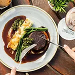 ステーキハウスのIndigo's Restaurantはから歩いて5分くらいにあります。